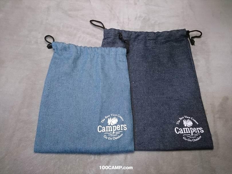 キャンプのロゴがとっても可愛いのでキャンパーにおすすめの巾着袋です。